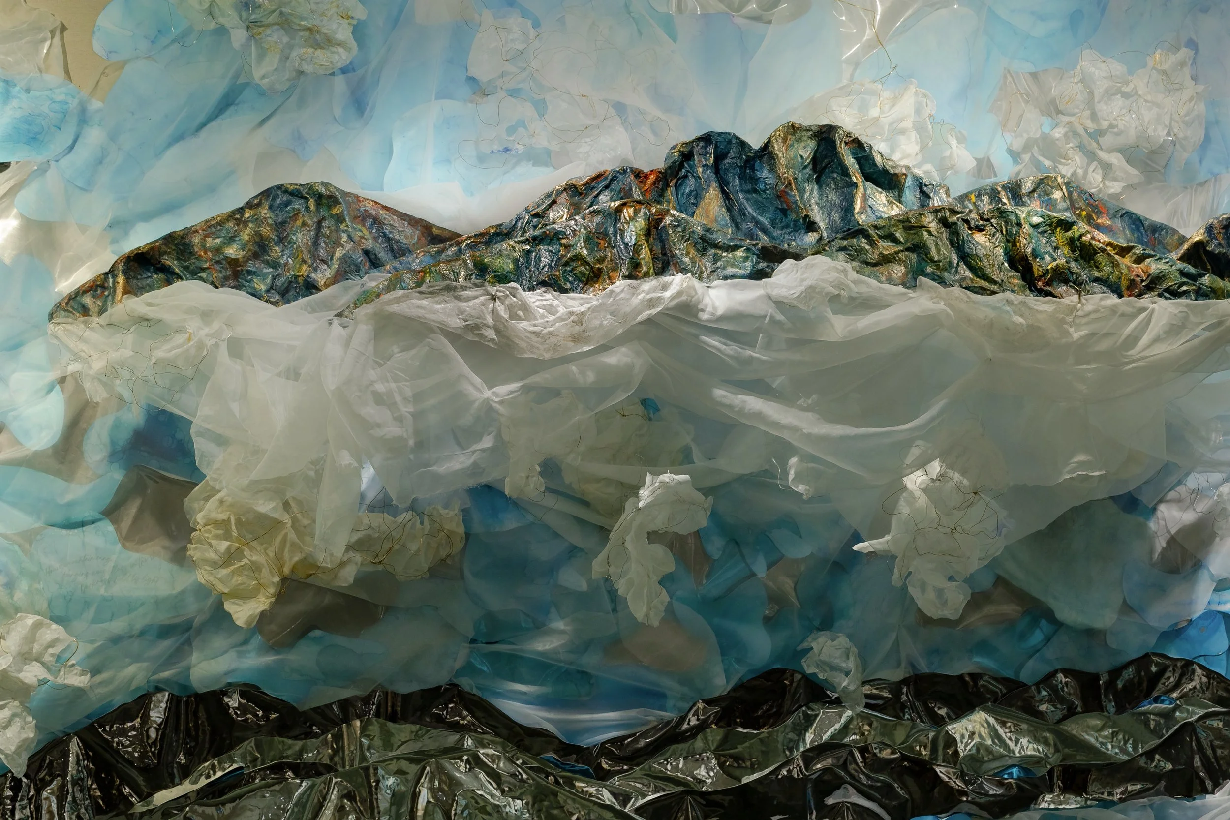 For generations, people have stood beneath the expansive landscapes of Hawaii, contemplating the unknown. Fascinated by the mountain and cloud formations of Mauna Kahalwai (West Maui Mountains), I join them. In a sensate response to the landscape, I’ve translated the figurative and spiritual experience of gazing upon the mountain into this body of work.