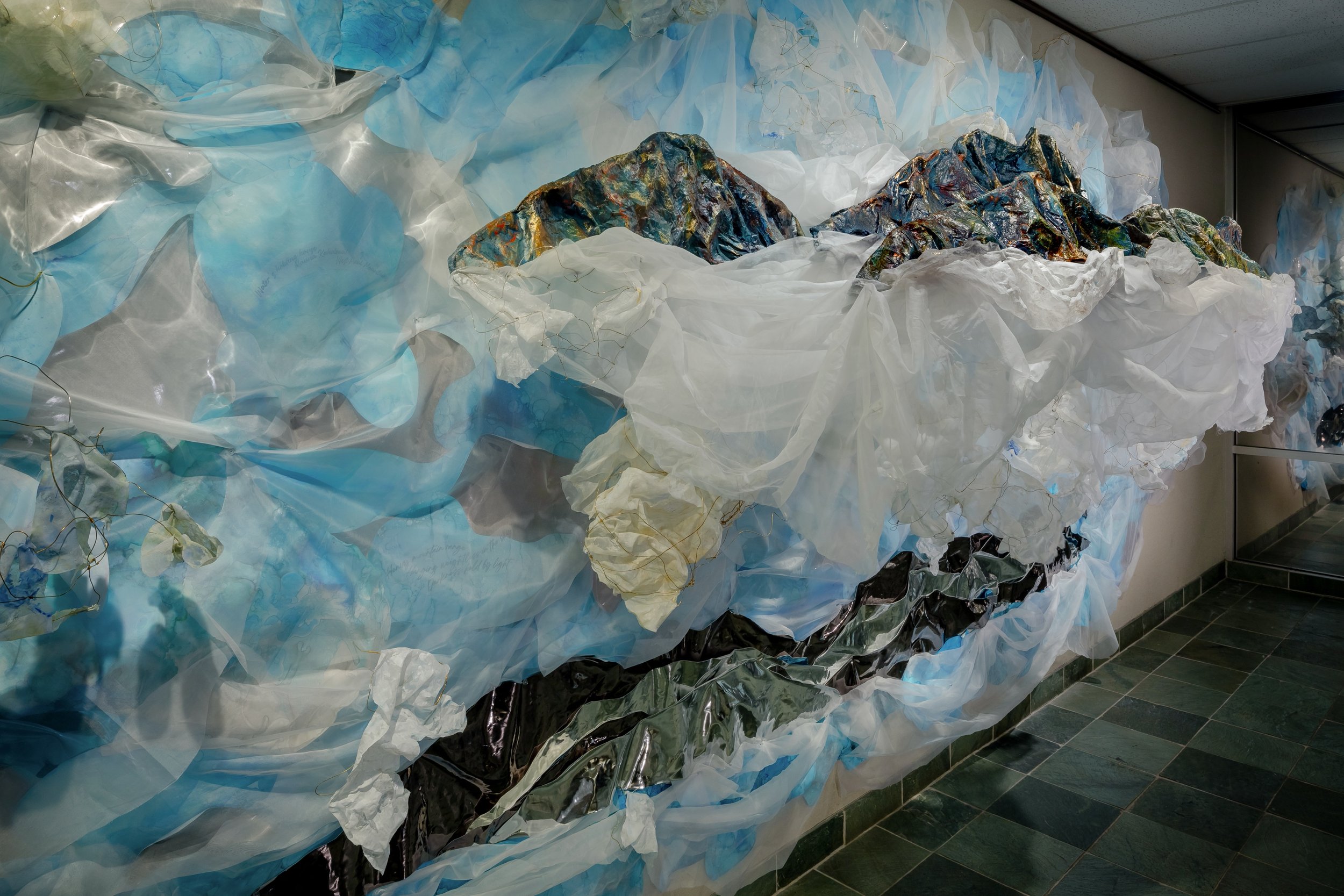 Intuitively, I began to make ink and watercolor paintings based upon the many photographs I had taken over the years. As I became unstuck, the direction of my work shifted while concurrently spending more time outdoors. The entire year was spent exploring new processes and materials including silk, flax fiber, and momi-gami paper, as I worked to translate the wonder of the landscape into new forms.